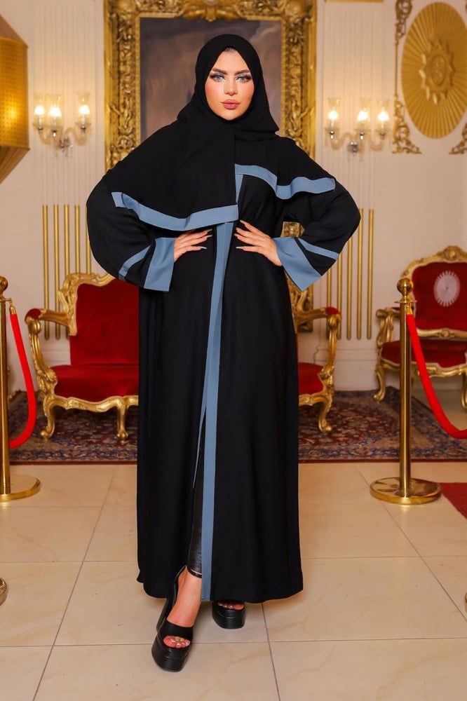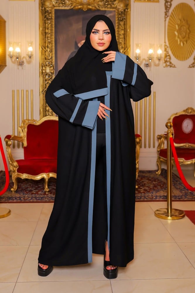 عباية كريب أطراف رصاصي تأتيك بتصميم أنيق ، مصنوعة من قماش كريب عالي الجودة بأطراف رصاصية ، تتميز بلونها الأسود الفاخر وخامتها كورية الصنع المقاومة للتجعد ، تأتي مع طرحة متناسقة ، تم تفصيل العباية من قماش ندى سوبر الناعم والمخصص للعبايات .